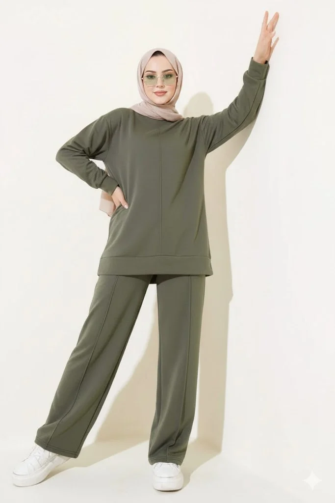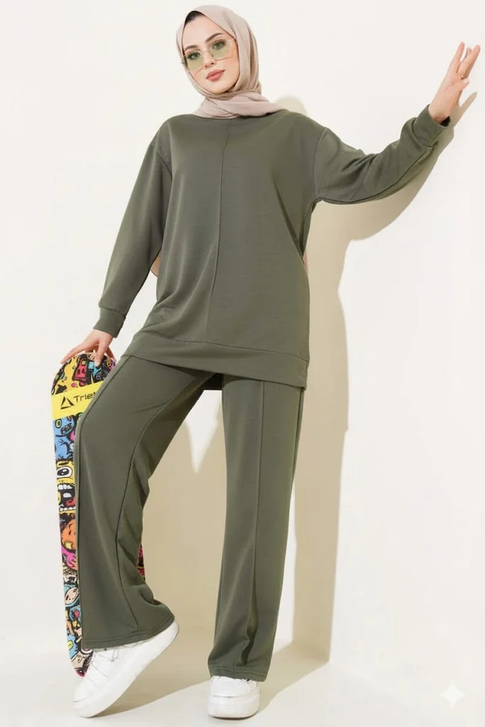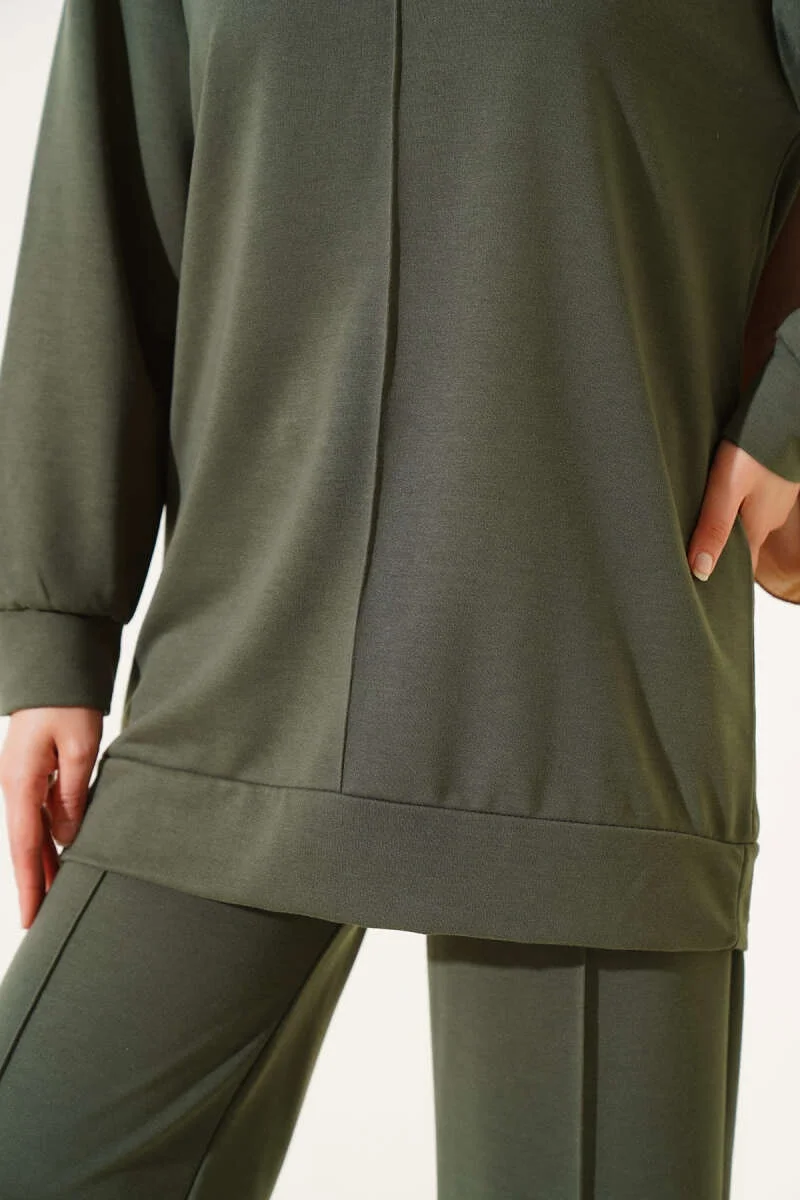 Haki Arma Detaylı Ribanalı Rahat Kesim İkili Takım