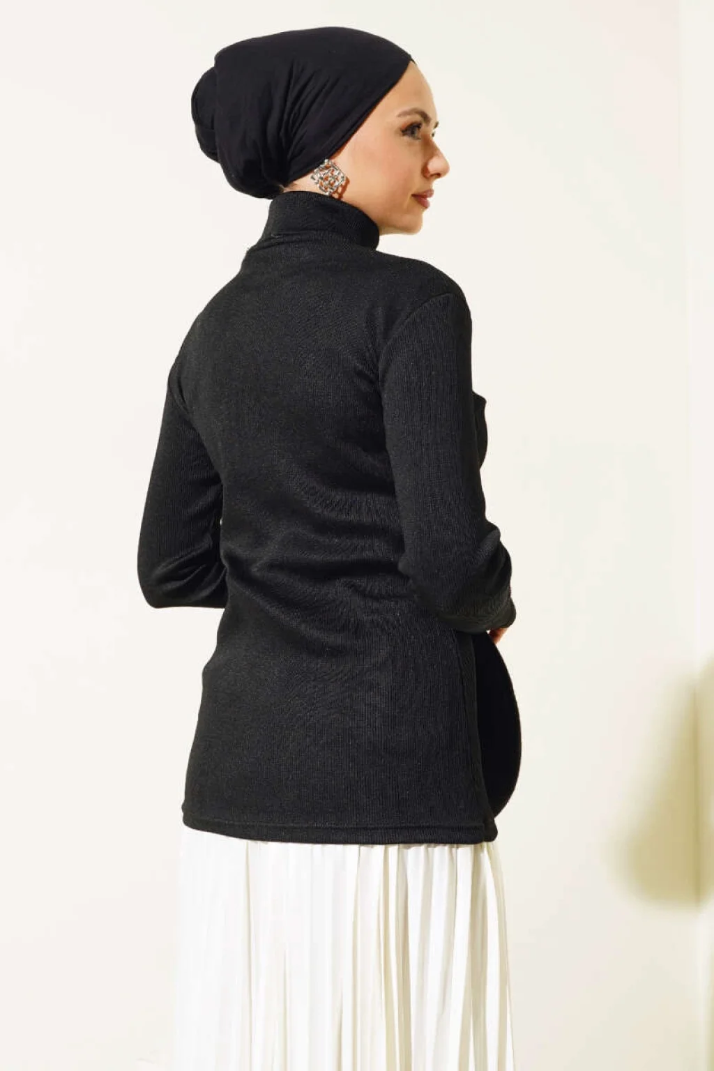 Siyah Boğazlı Fitilli Triko Body