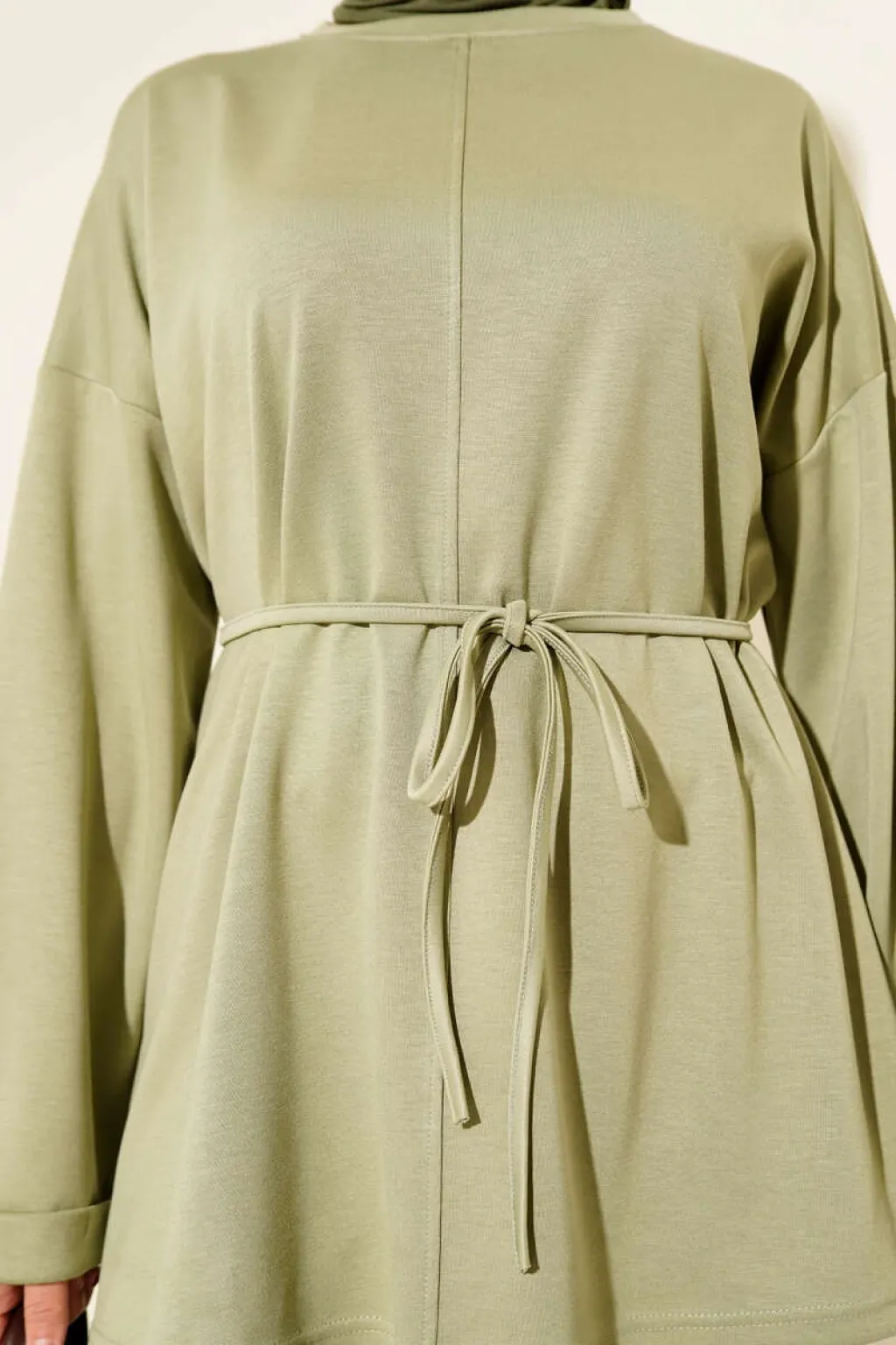 Bisiklet Yaka İp Kuşaklı Tunik Yağ Yeşil