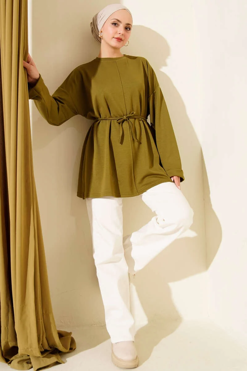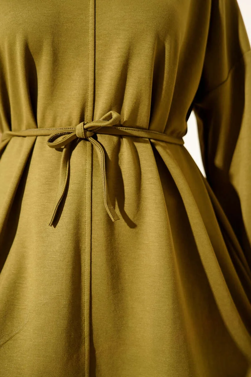 Bisiklet Yaka İp Kuşaklı Tunik Haki