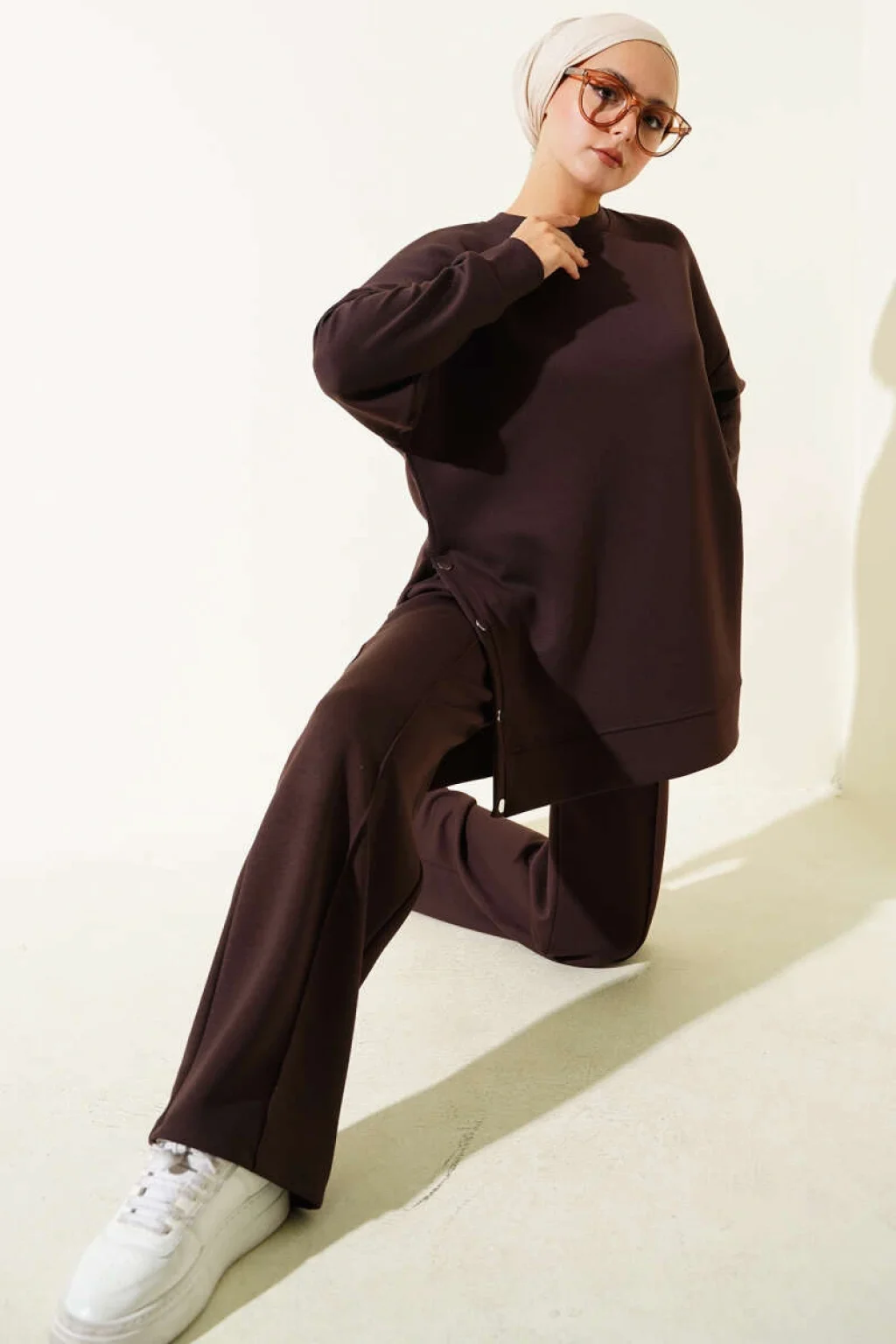 Loyşa Basic Fermuarlı Kapüşonlu İkili Takım Kahve