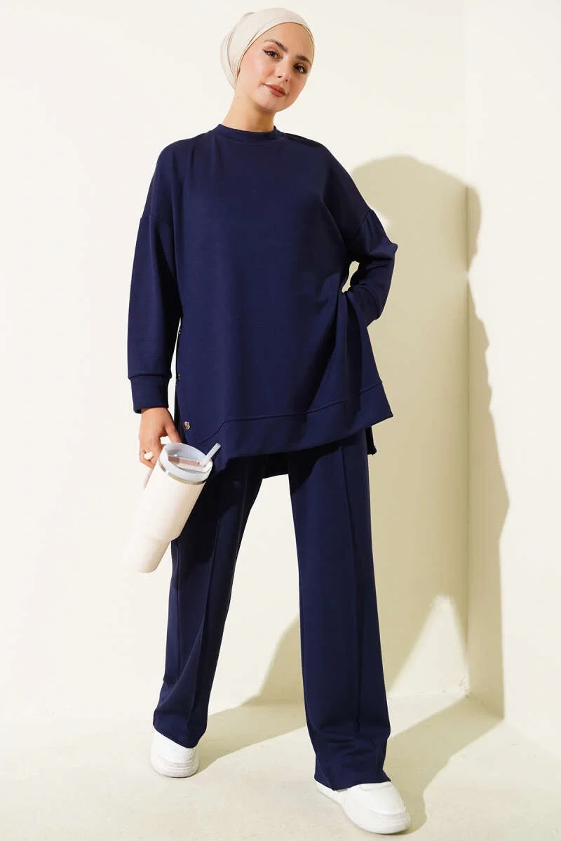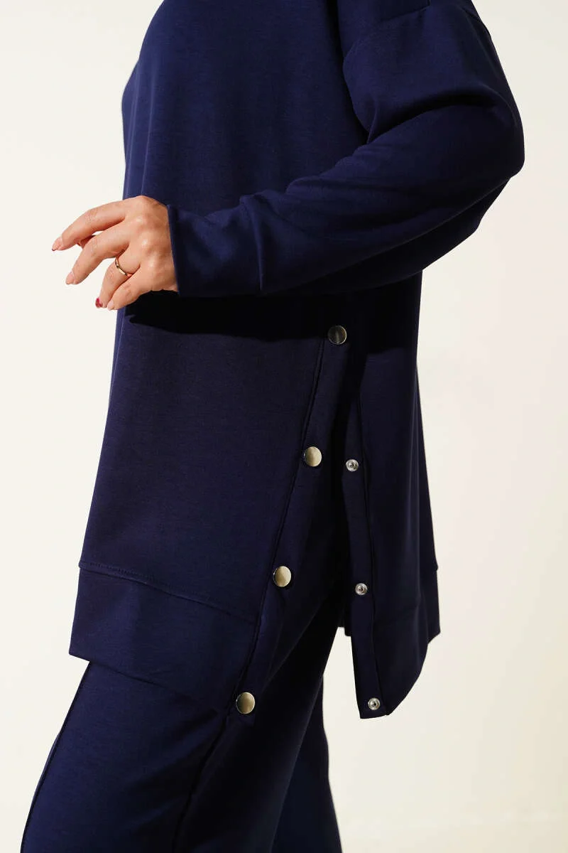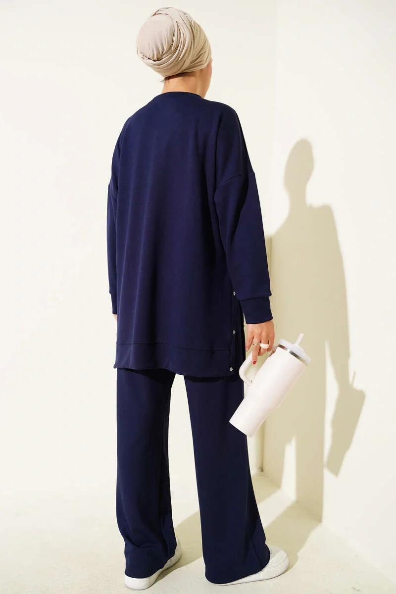 Bisiklet Yaka Yanları Metal Düğmeli İkili Takım Lacivert