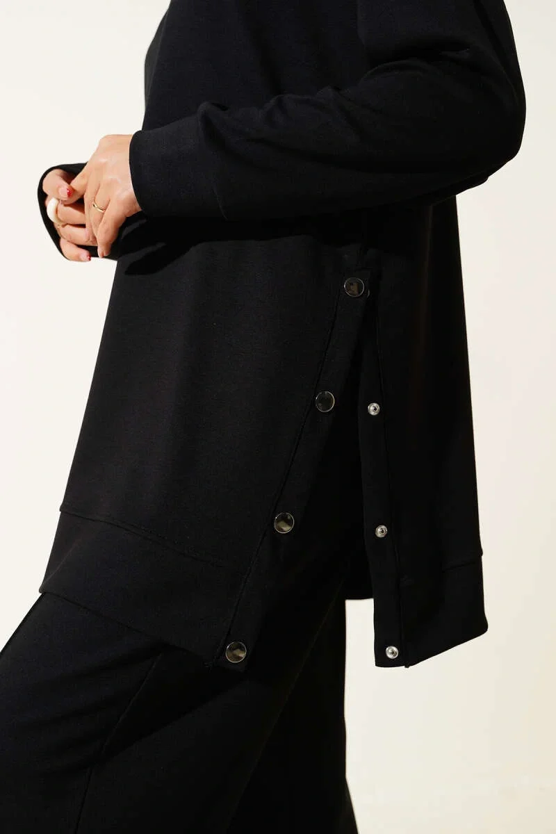 Bisiklet Yaka Yanları Metal Düğmeli İkili Takım Siyah