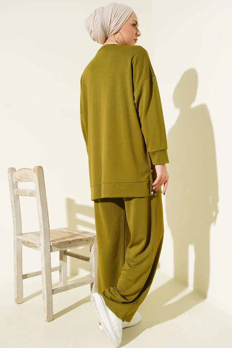 Haki Arma Detaylı Ribanalı Rahat Kesim İkili Takım