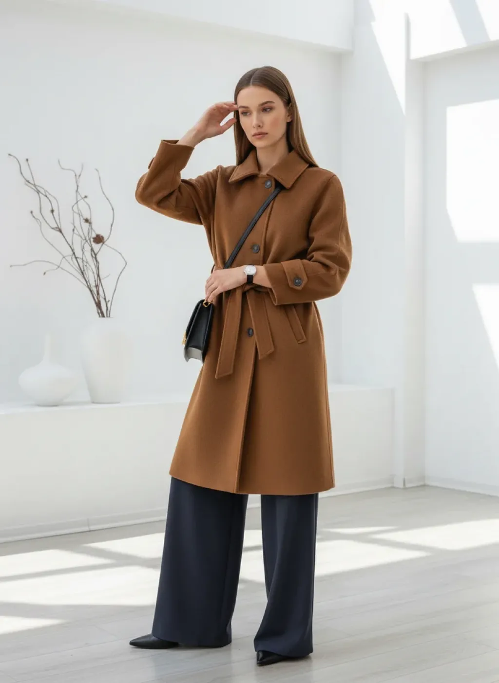 Kumaş Türü: Yüksek Kaliteli Kaşe (%70 Yün, %30 Viskoz/Polyester karışımı - Ürünün dokusuna göre oranları revize edebilirsin.)
