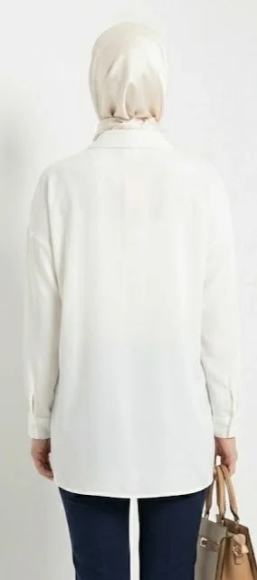 Model: Uzun kollu, arkası hafif uzun (asimetrik) tunik gömlek kesimi.