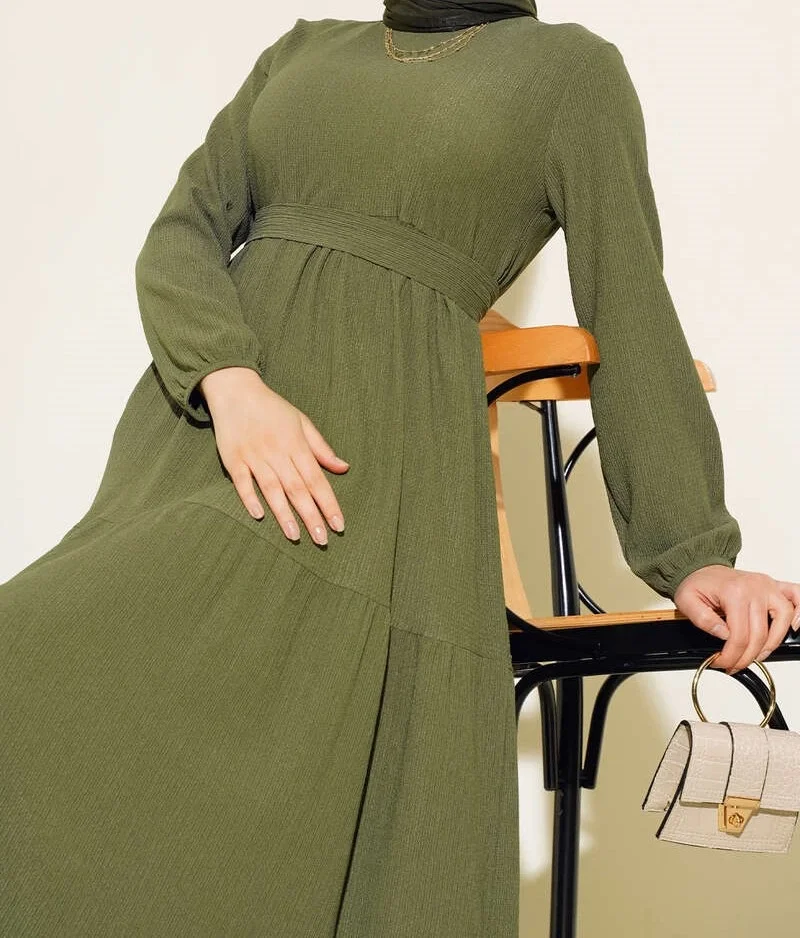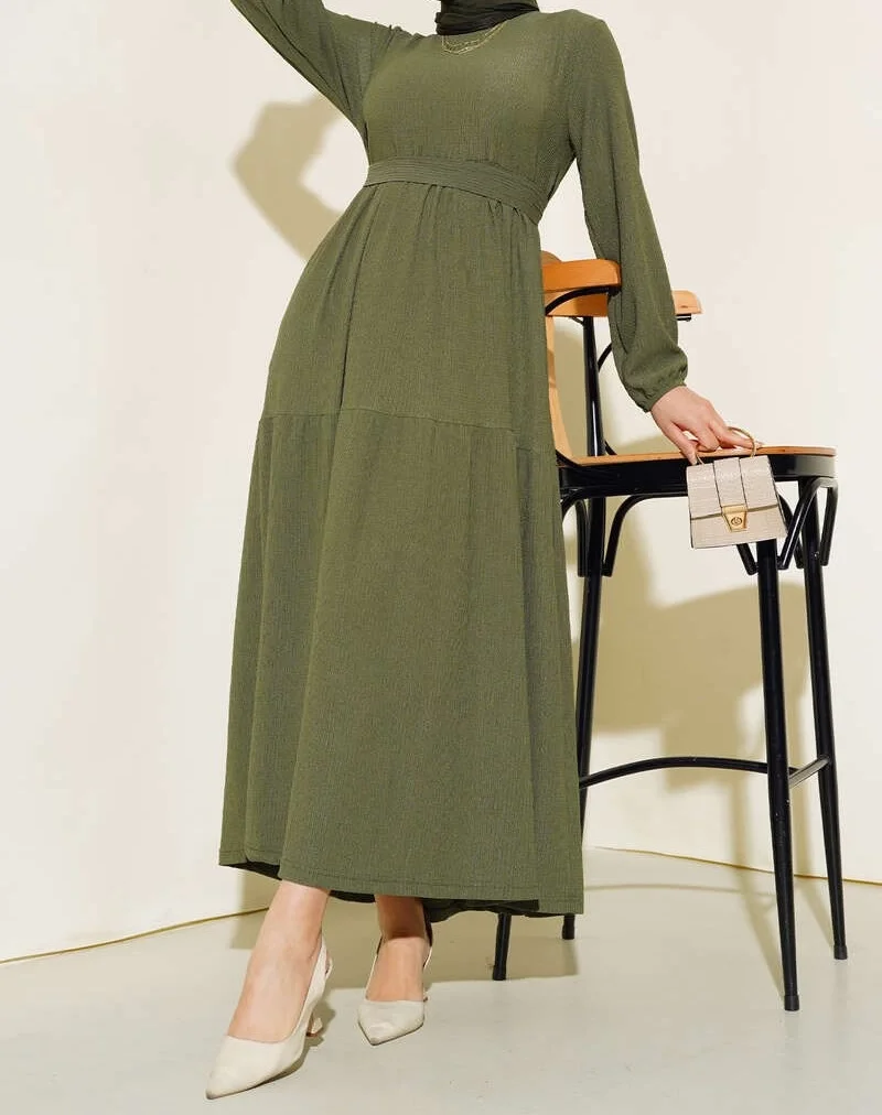 Bürümcük Kat Kat Elbise Haki