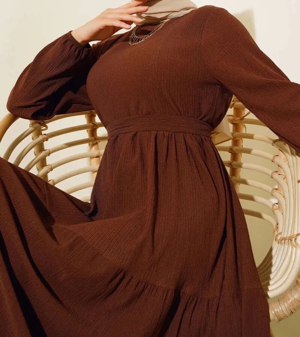 Yeni sezon elbisemiz sizlerle beraber. Elbisemiz bürümcük olup, kat modeldir. Kol bilekleri lastiklidir. Astarsızdır. Elbisemizin kendi kumaşından kuşağı bulunmaktadır. Oldukça rahattır. Elbisemiz sade ve sportif oluşuyla favoriniz olacak. Renk seçenekleri mevcuttur. Kolye Aksesuardır.