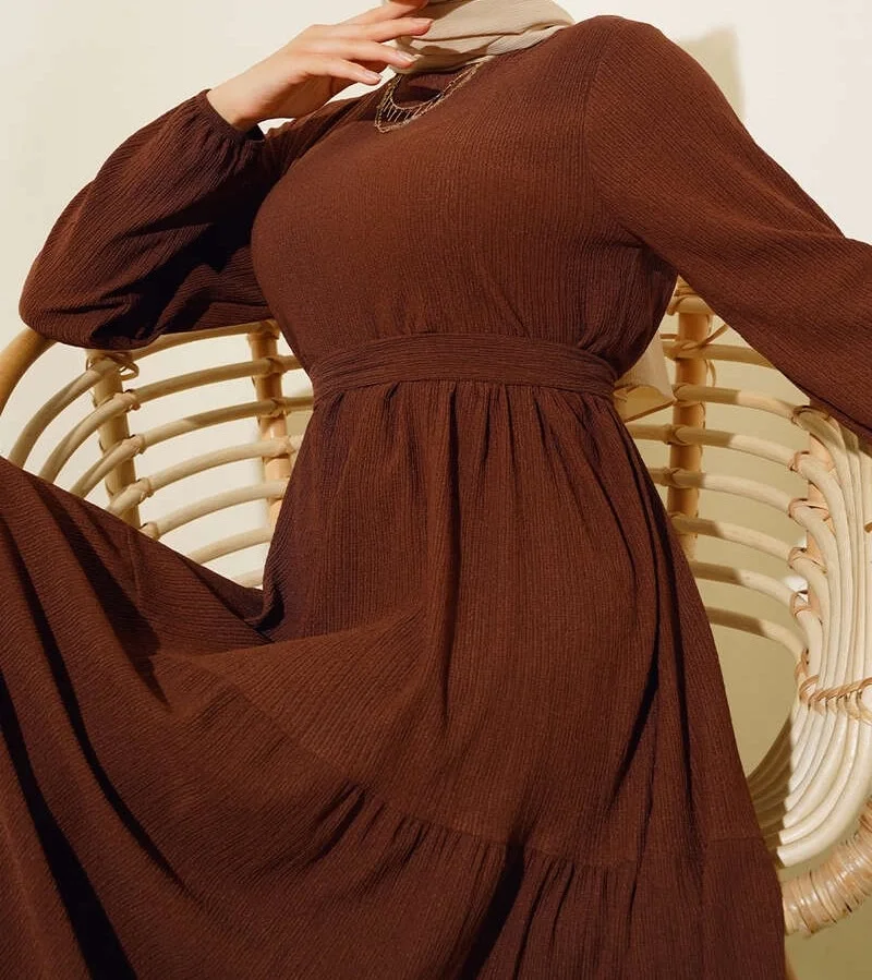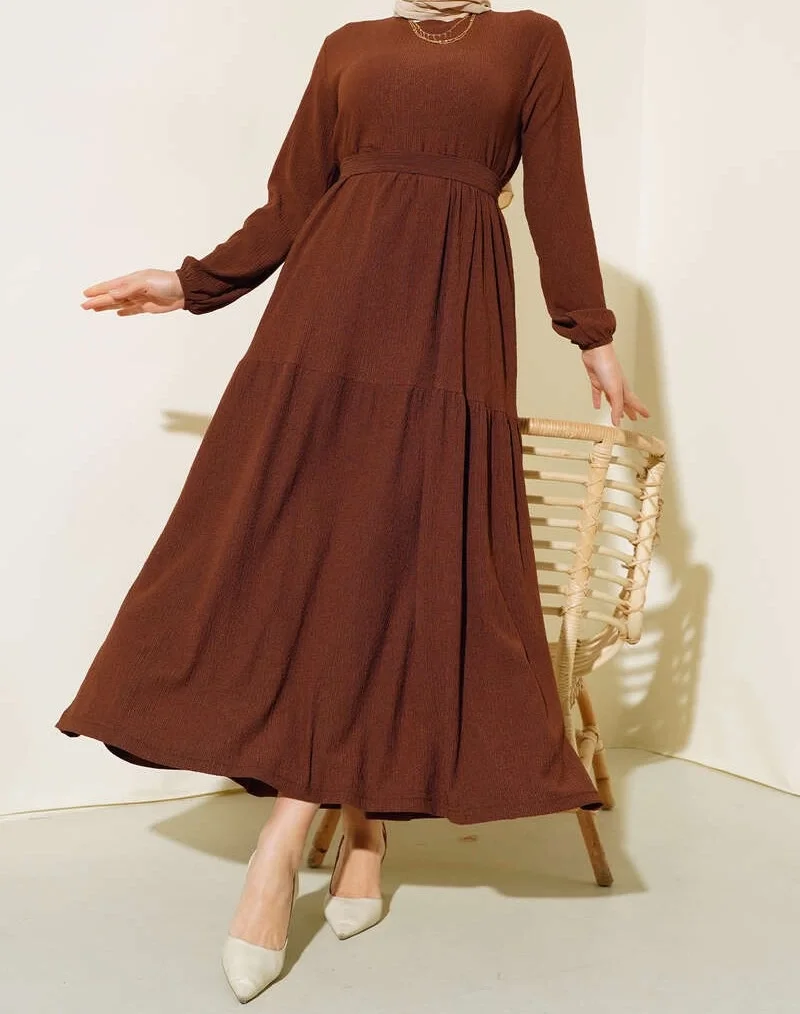 Bürümcük Kat Kat Elbise Kahve