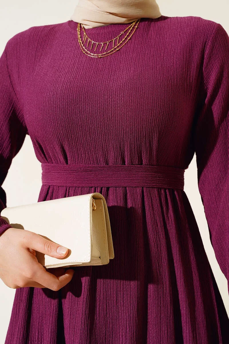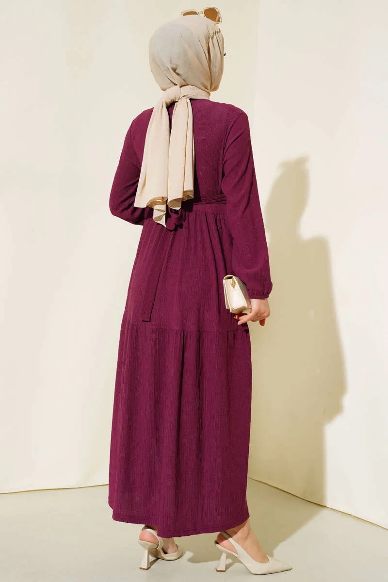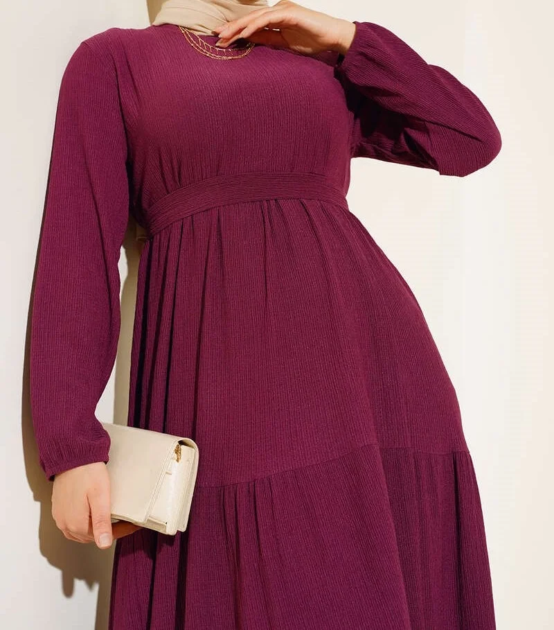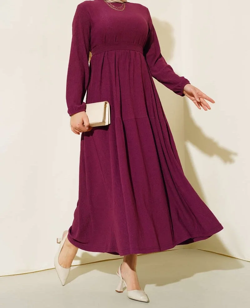 Premium Esnek Çelik Örme Nervürlü Uzun Bordo Elbise