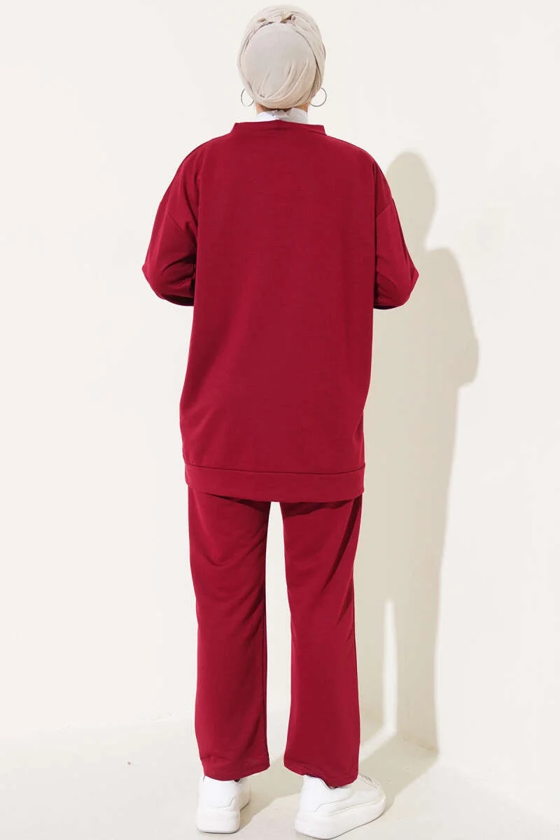 Bordo Arma Detaylı Ribanalı Rahat Kesim İkili Takım