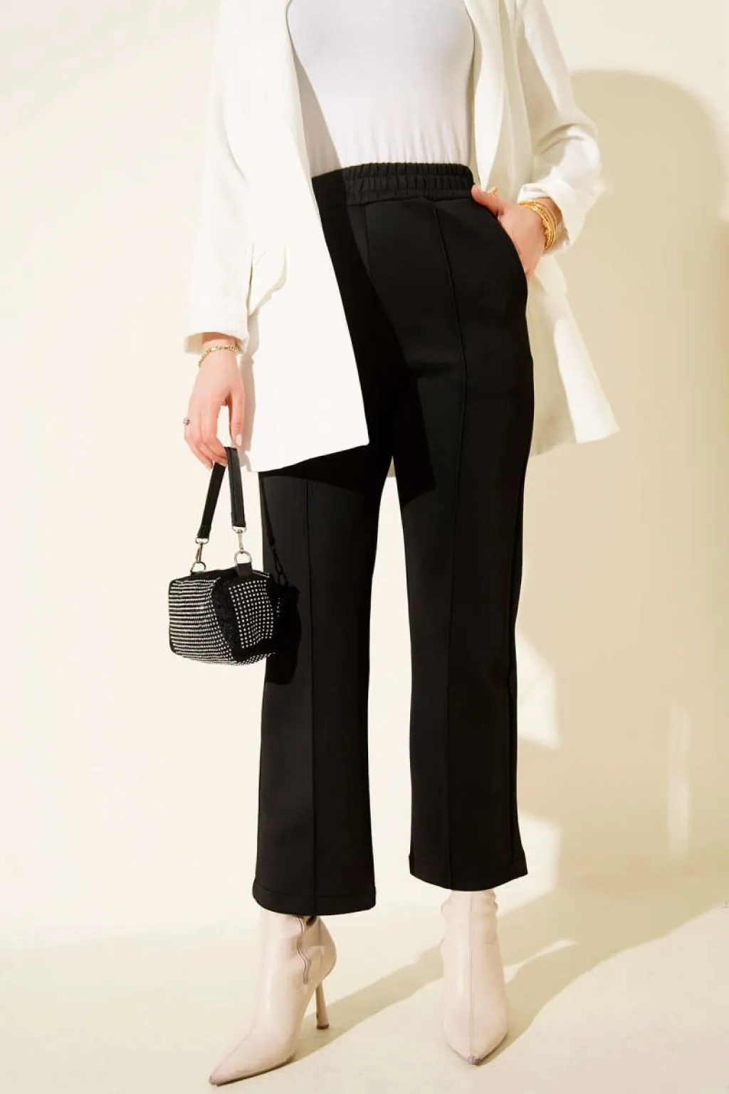 Yumuşak dokusu ve toparlayıcı özelliğiyle bilinen yüksek kaliteli scuba (dalgıç) kumaştan üretilen bu pantolon, gün boyu formunu koruyan yapısıyla favoriniz olacak.