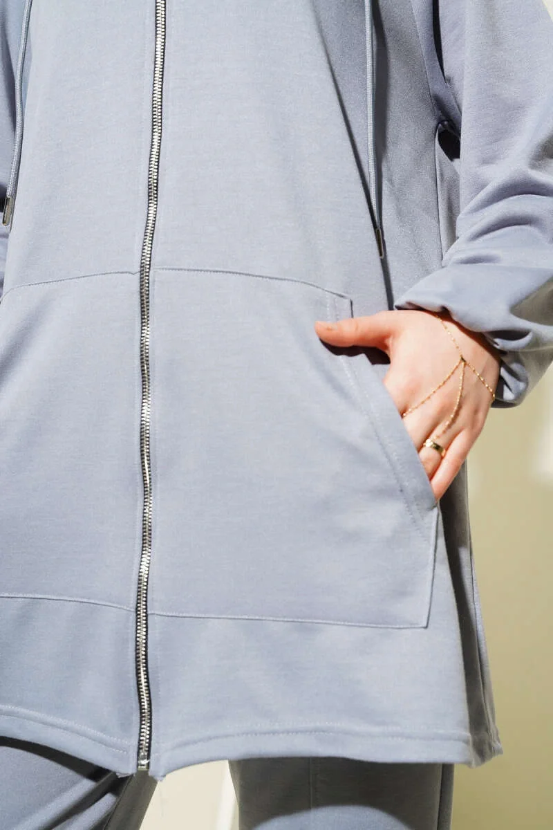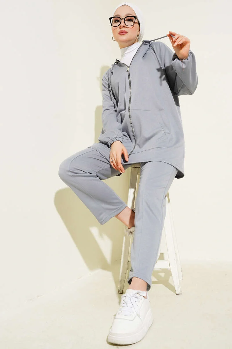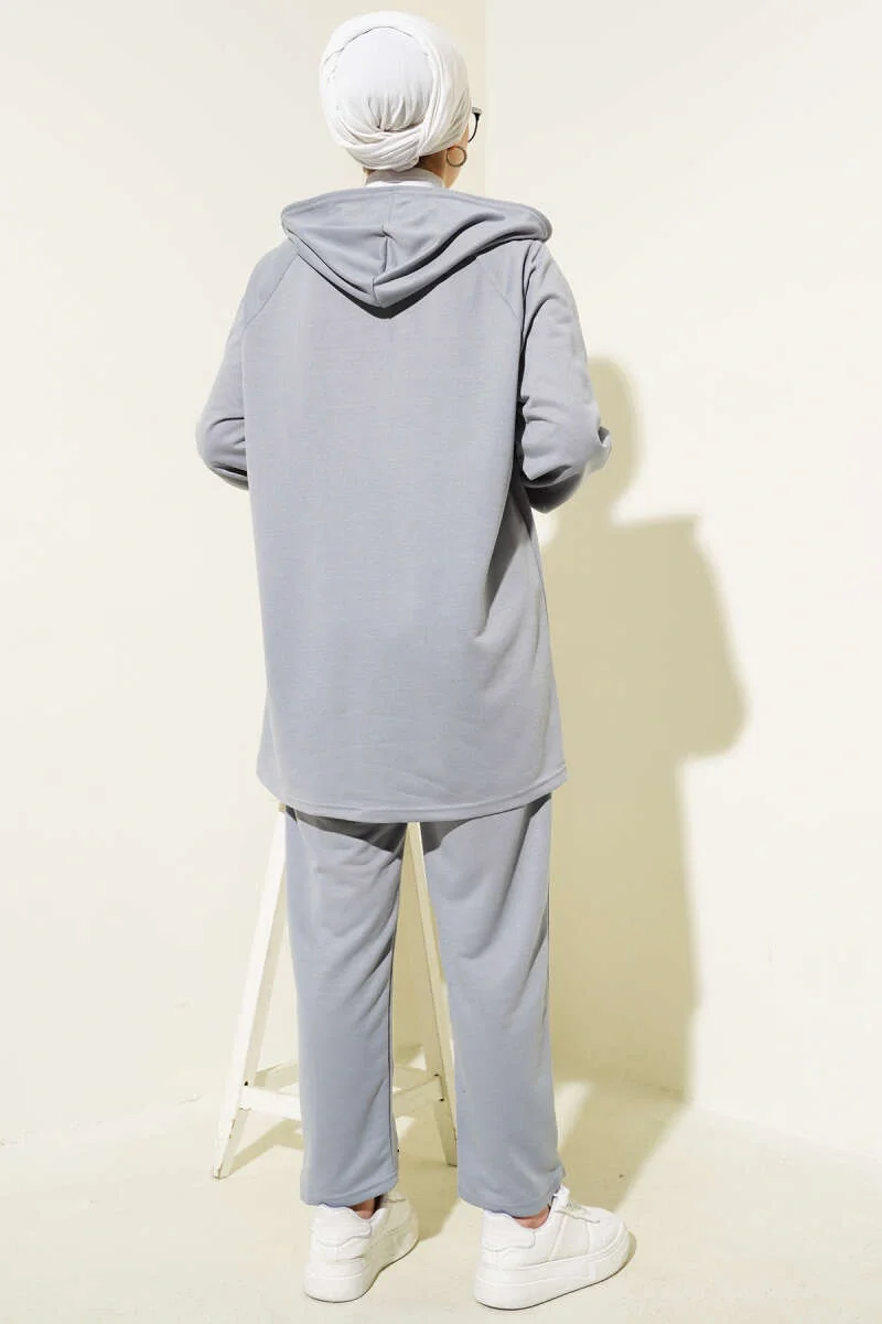 Kanguru Cepli Fermuarlı İkili Takım Gri