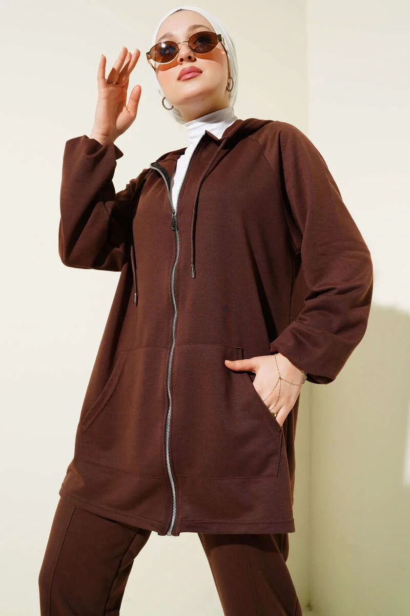 Kanguru Cepli Fermuarlı İkili Takım Kahve
