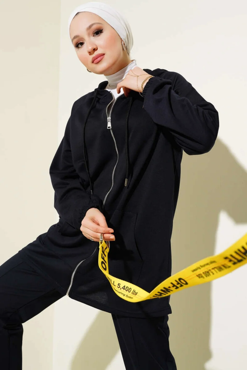 Kanguru Cepli Fermuarlı İkili Takım Siyah
