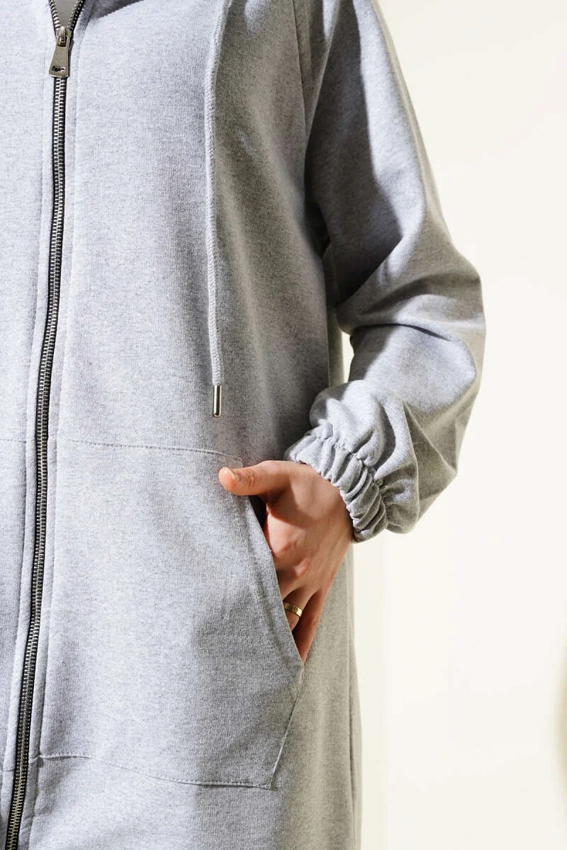 Kanguru Cepli Fermuarlı İkili Takım Melanj Gri