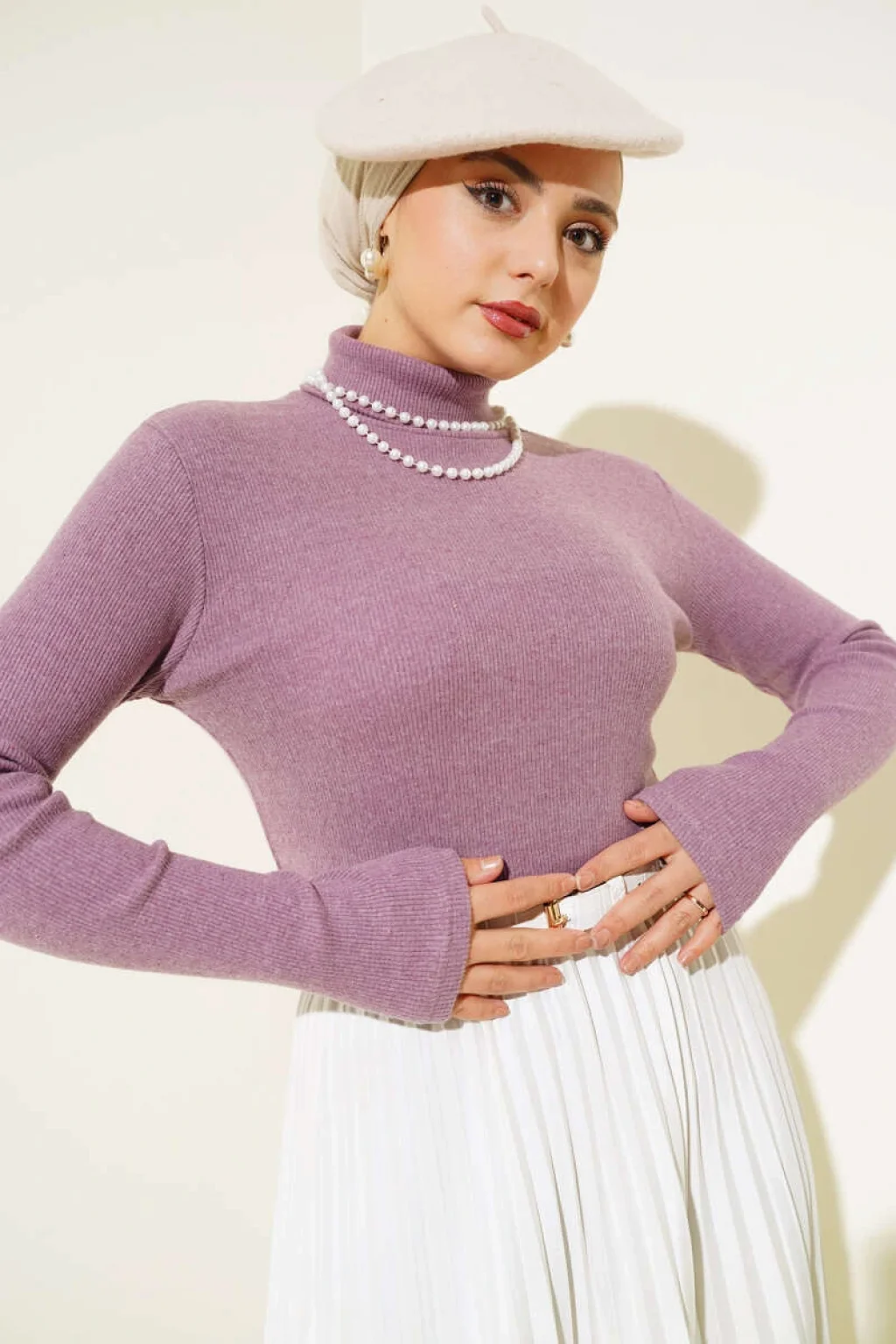 Gül Kurusu Boğazlı Fitilli Triko Body