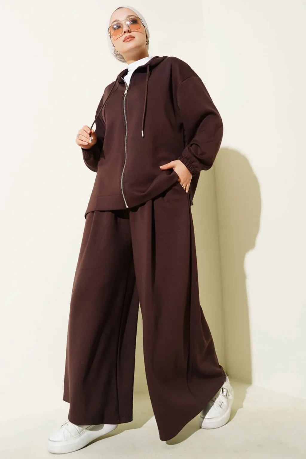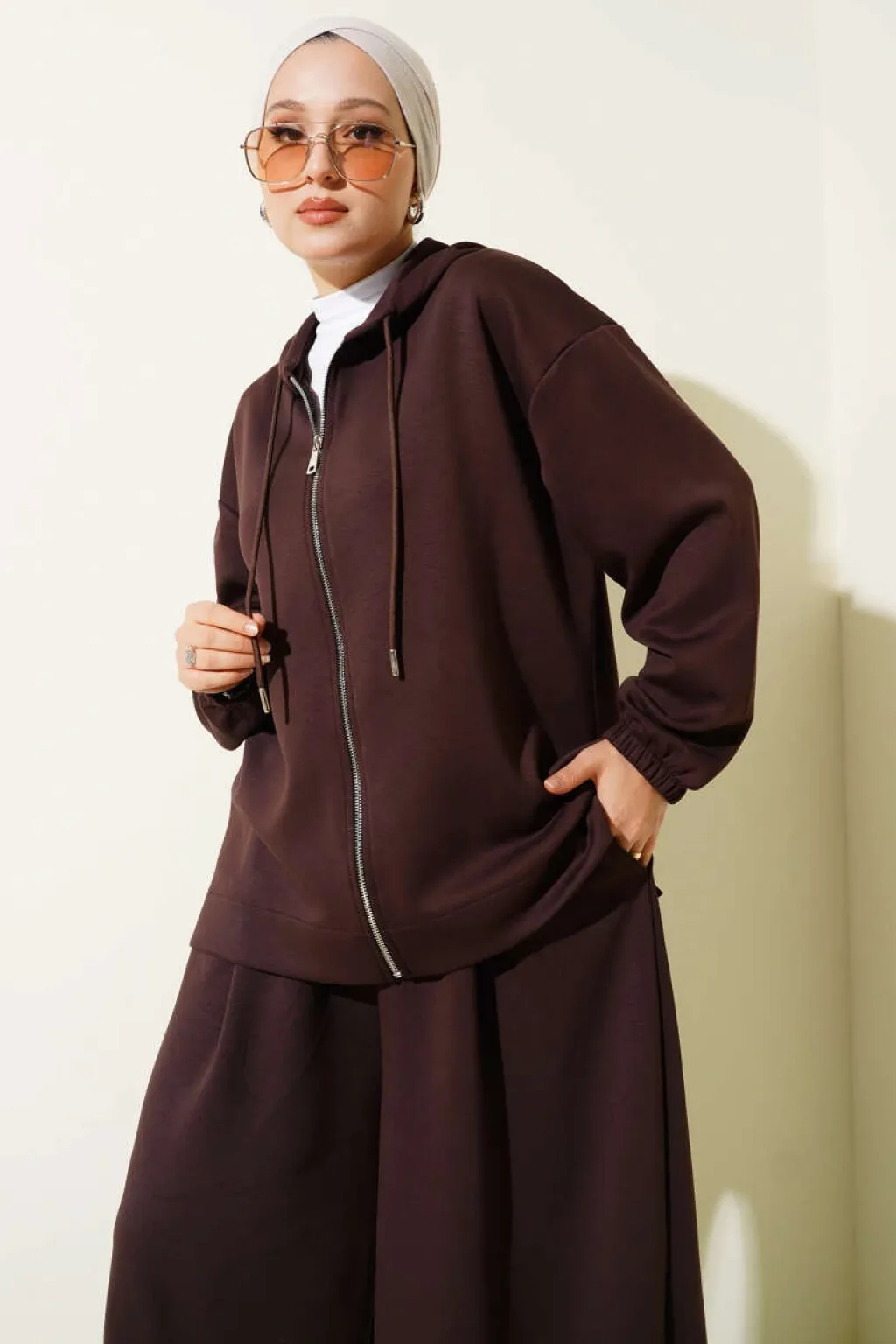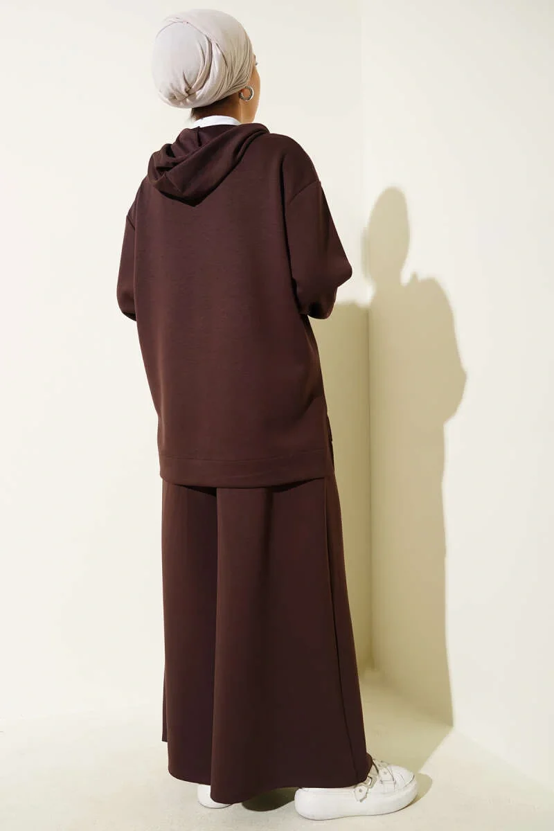 Loyşa Basic Fermuarlı Kapüşonlu İkili Takım Kahve