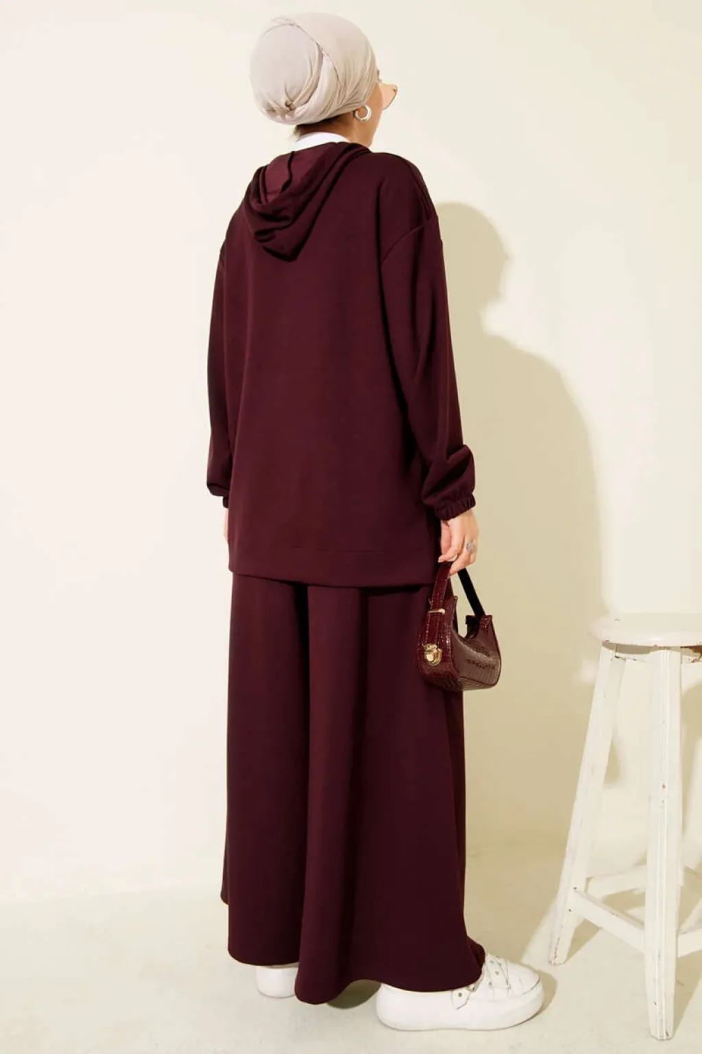 Loyşa Basic Fermuarlı Kapüşonlu İkili Takım Mürdüm