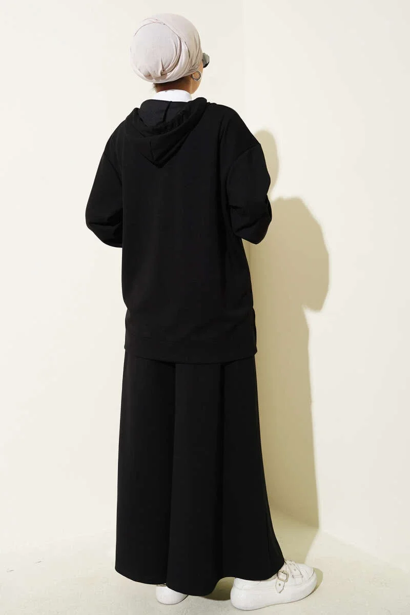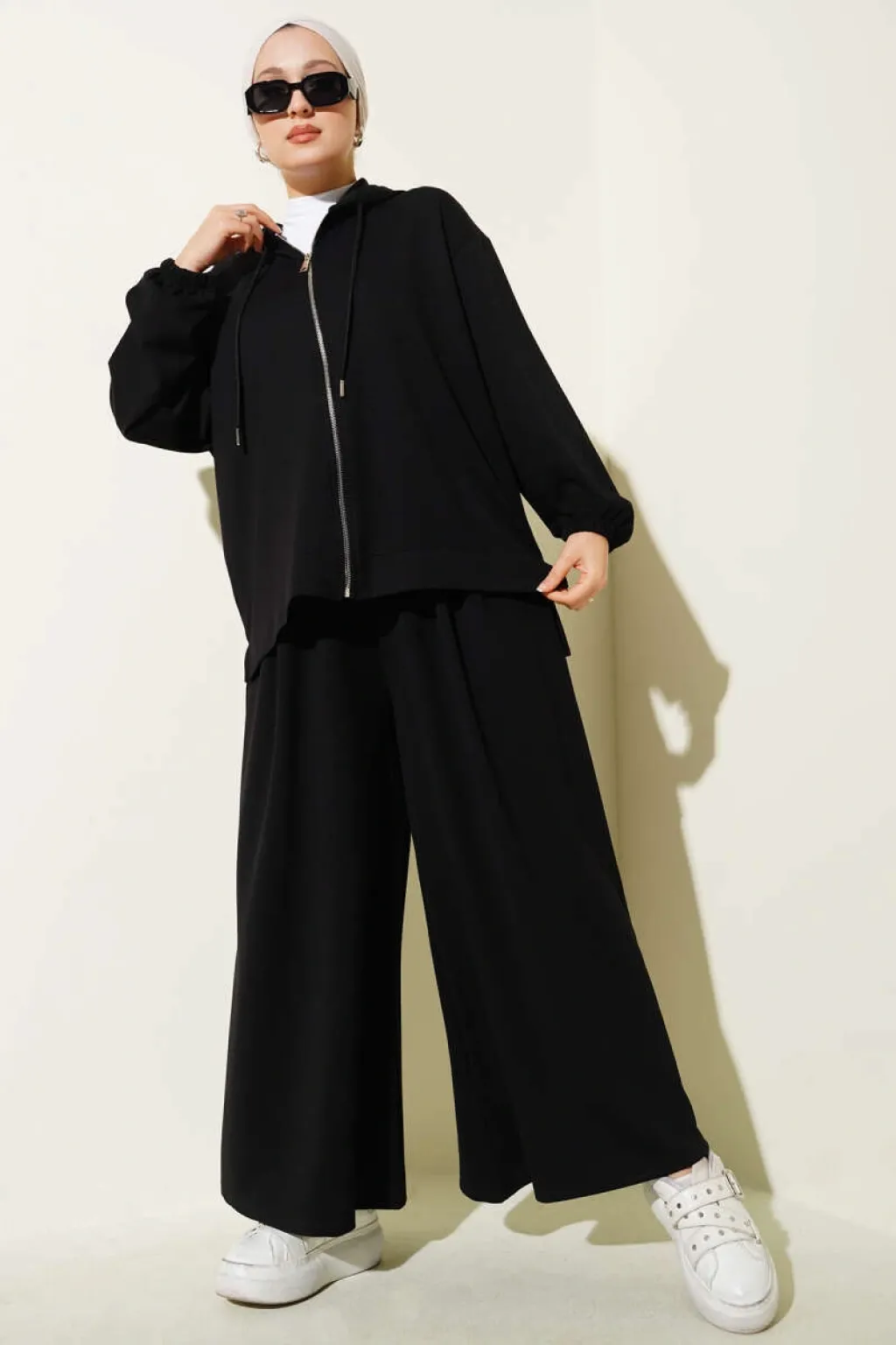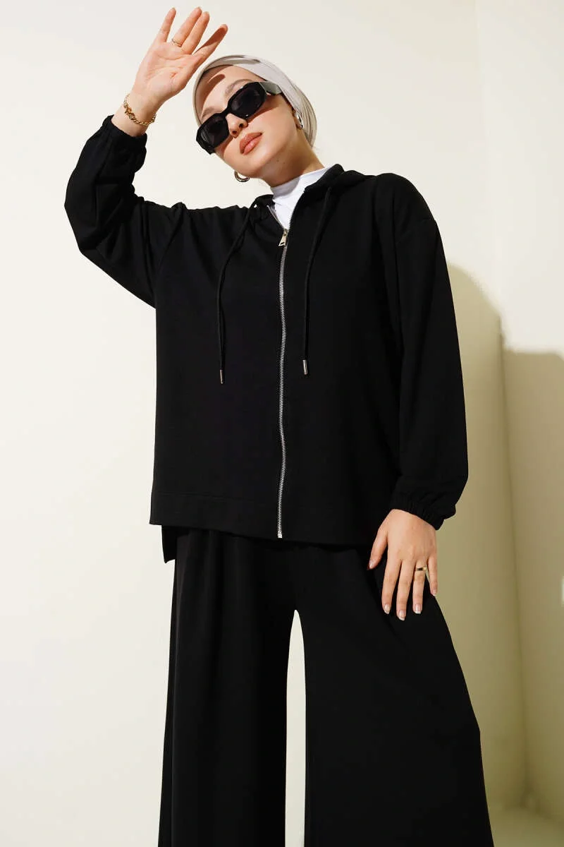 Loyşa Basic Fermuarlı Kapüşonlu İkili Takım Siyah