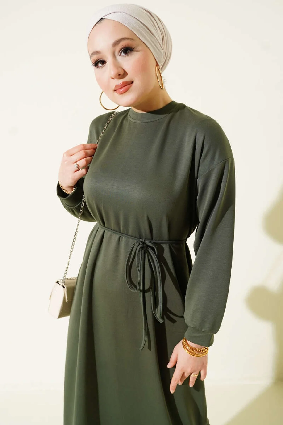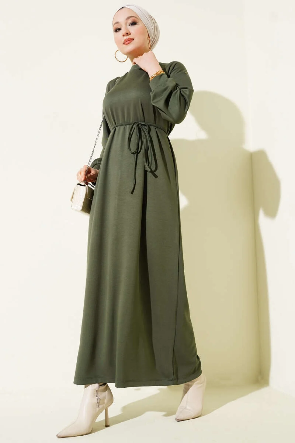 Düğme Detaylı Beli Büzgülü Tasarım Elbise