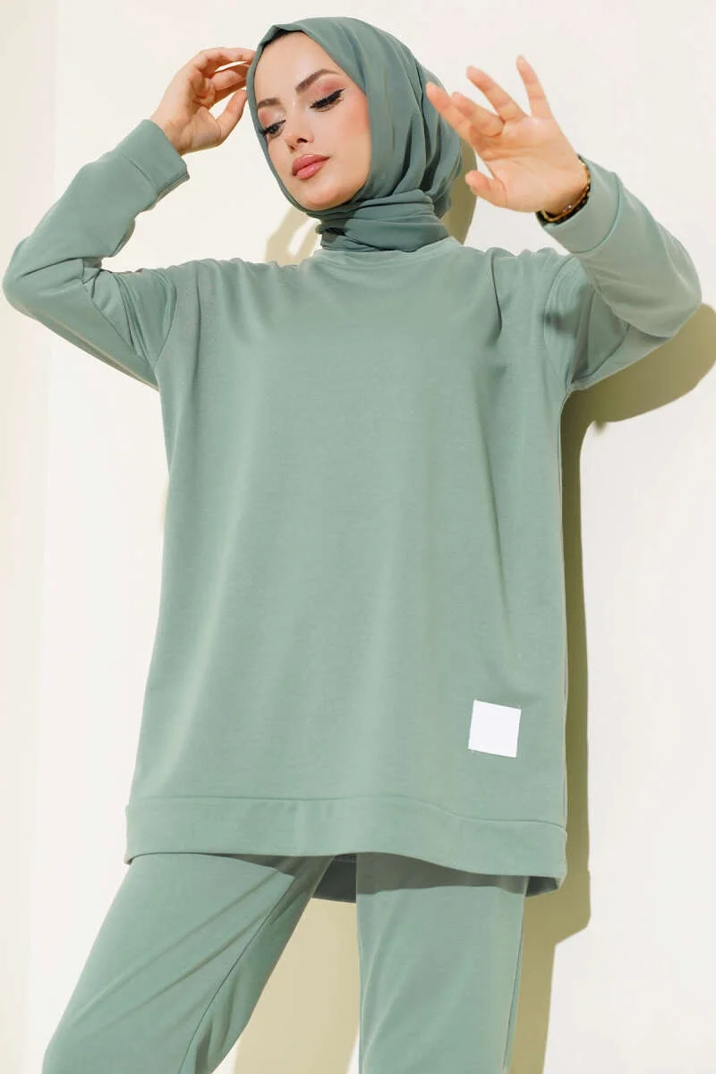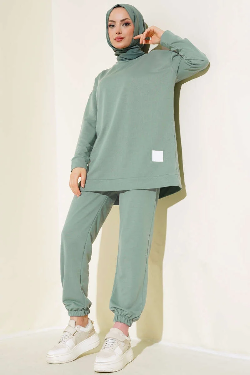 Yeni sezon ikili takımımız sportif tarzıyla sezonun favorileri arasında yerini alacaktır. Tuniğimizin etek ucu armalıdır. Oval yakadır. Omuzları düşük oversize modeldir. Pantolonumuzun beli ve paçası lastiklidir. Cepsiz modeldir. Sportif ikili takımımız dolaplarınızda yerlerini beklemektedir.