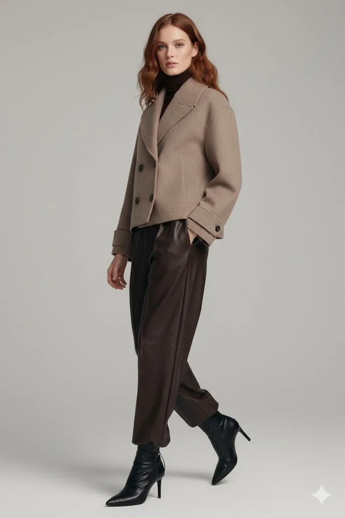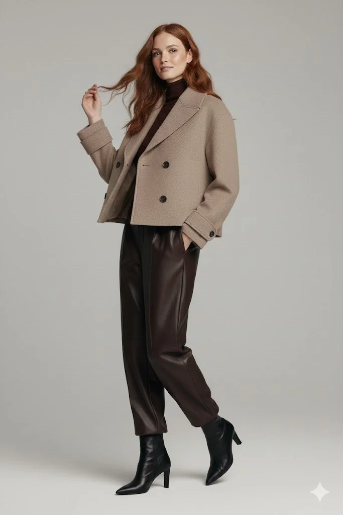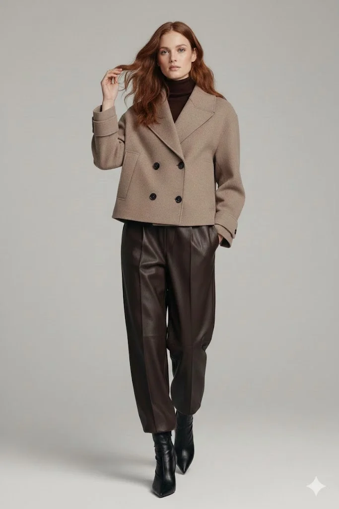 "Zamansız Şıklık: Premium Kahve Rengi Kaşe Crop Ceket"