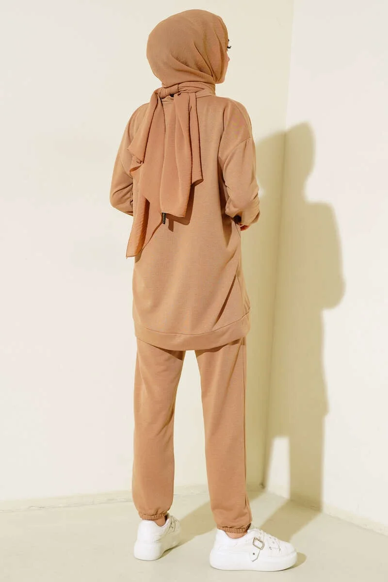 Yeni sezon ikili takımımız sportif tarzıyla sezonun favorileri arasında yerini alacaktır. Tuniğimizin etek ucu armalıdır. Oval yakadır. Omuzları düşük oversize modeldir. Pantolonumuzun beli ve paçası lastiklidir. Cepsiz modeldir. Sportif ikili takımımız dolaplarınızda yerlerini beklemektedir.