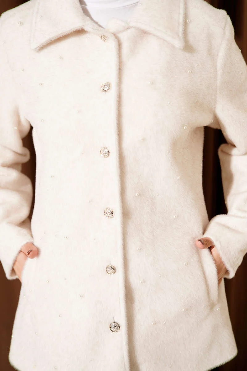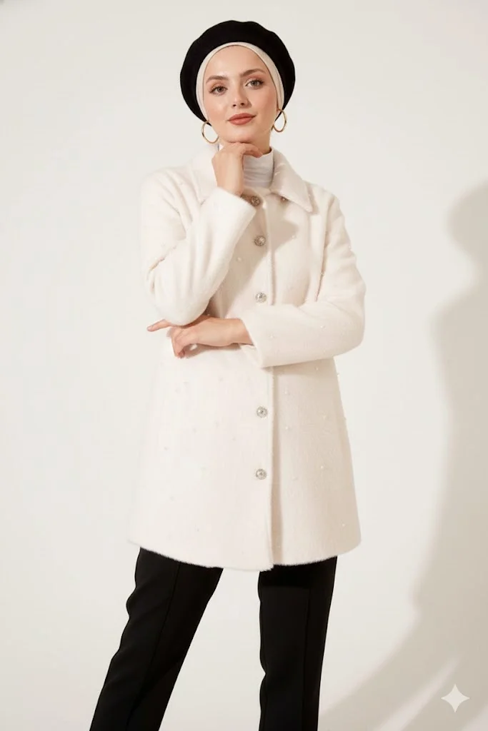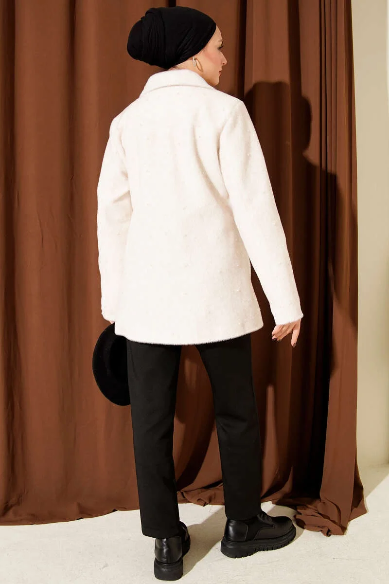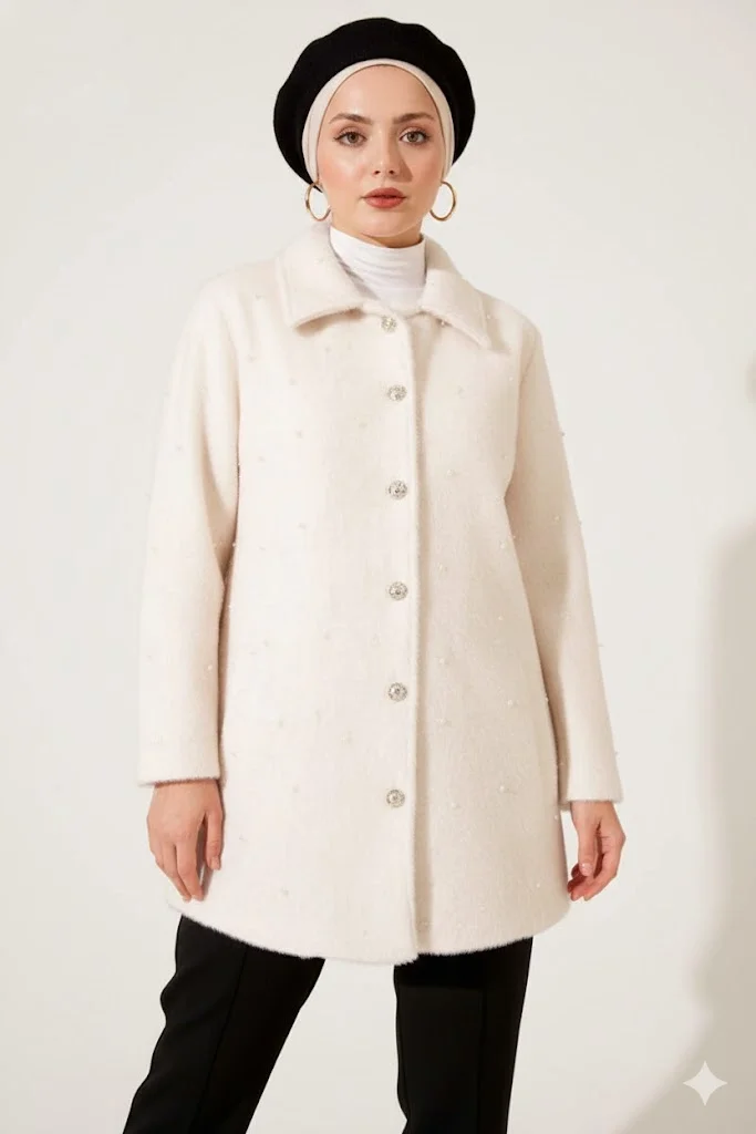 Taş Lüks Tay Tüyü İnci İşlemeli Kaban