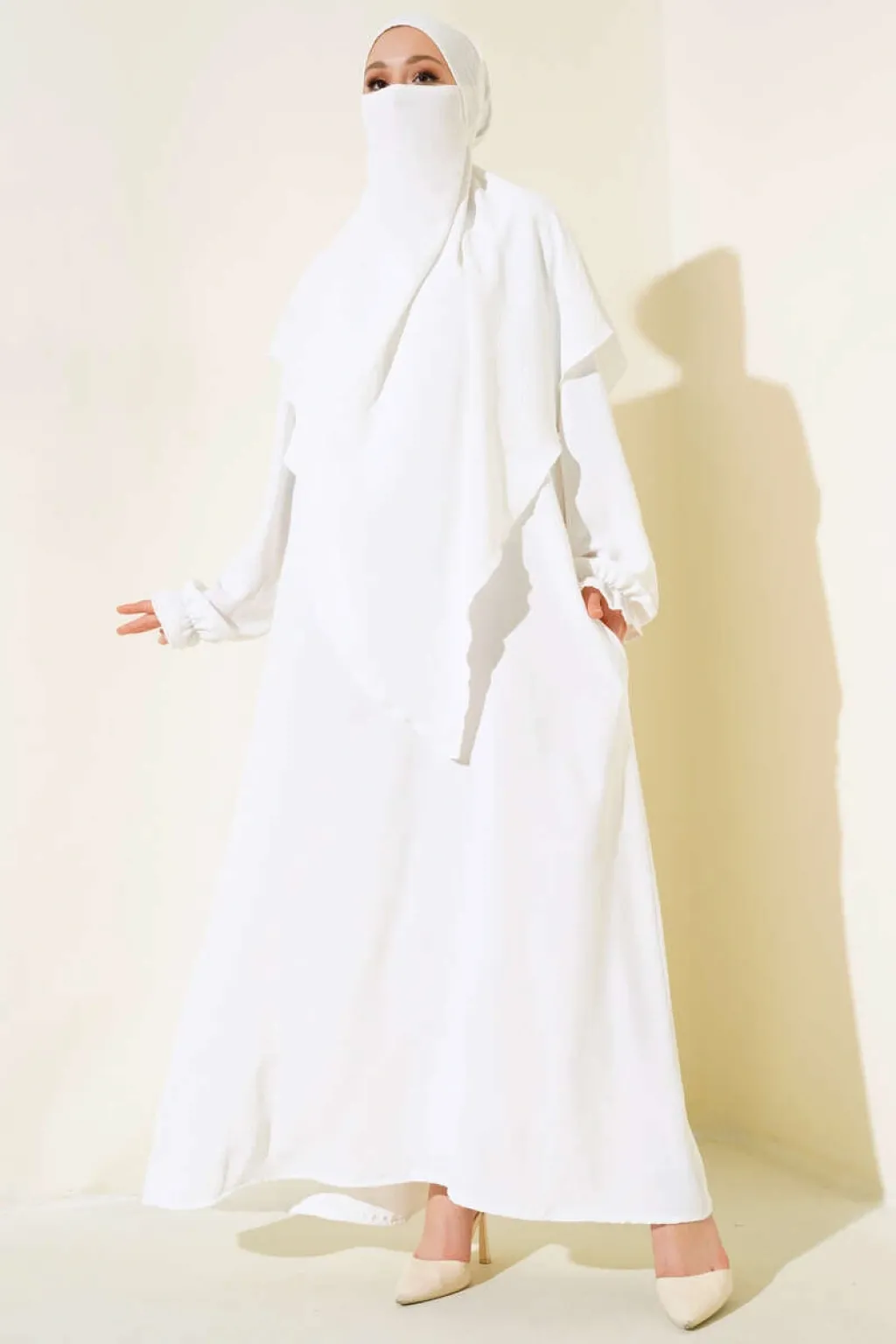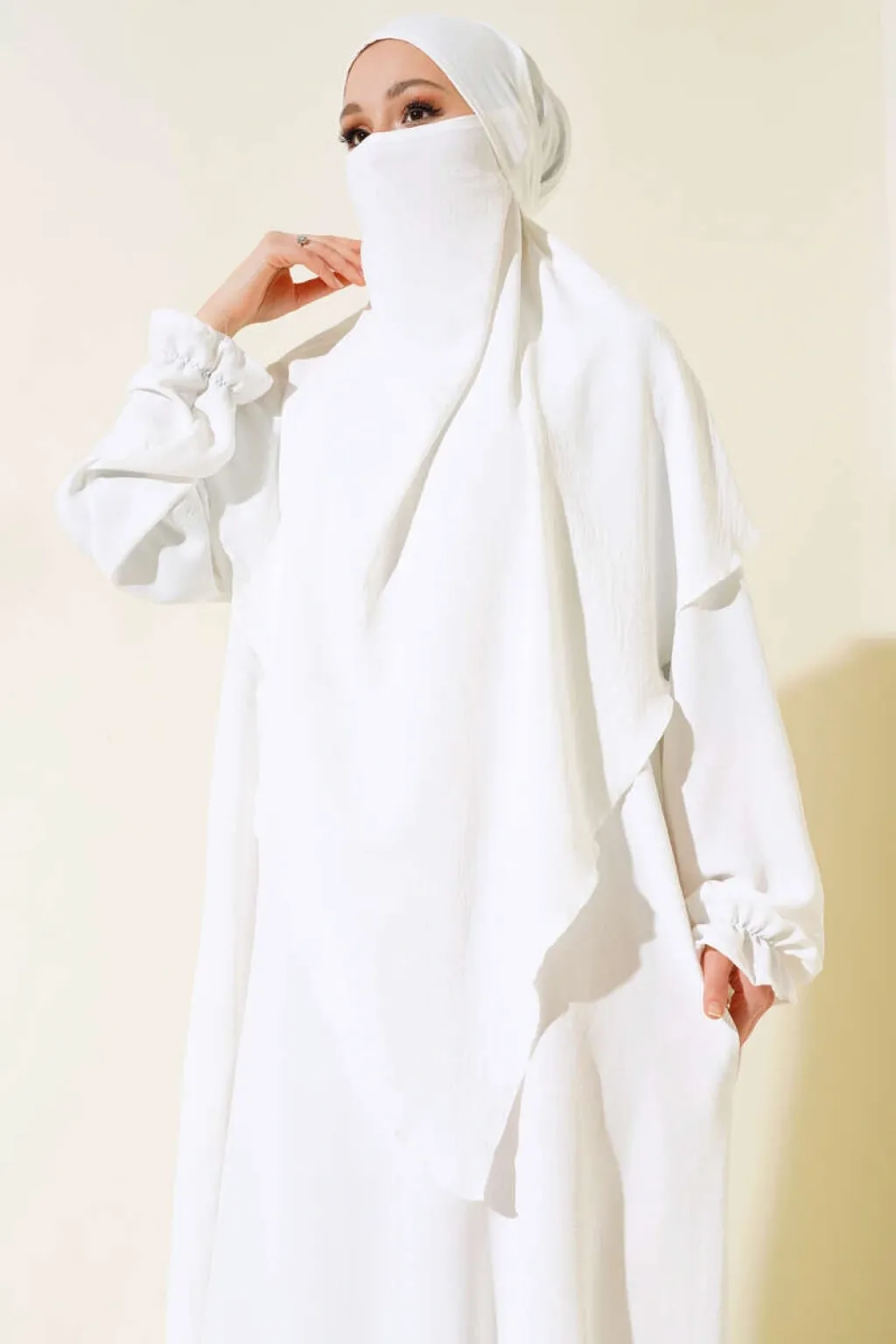 Yeni sezon peçeli ferace elbisemiz sizin için özel olarak tasarlandı. Başörtü ve peçesi ayrı olarak çıkarılabilmektedir. Elbisemiz oval yakadır. Bileklerinde lastik detayı olan elbisemiz iki adet cebe sahiptir. Cepleri kullanılabilmektedir.