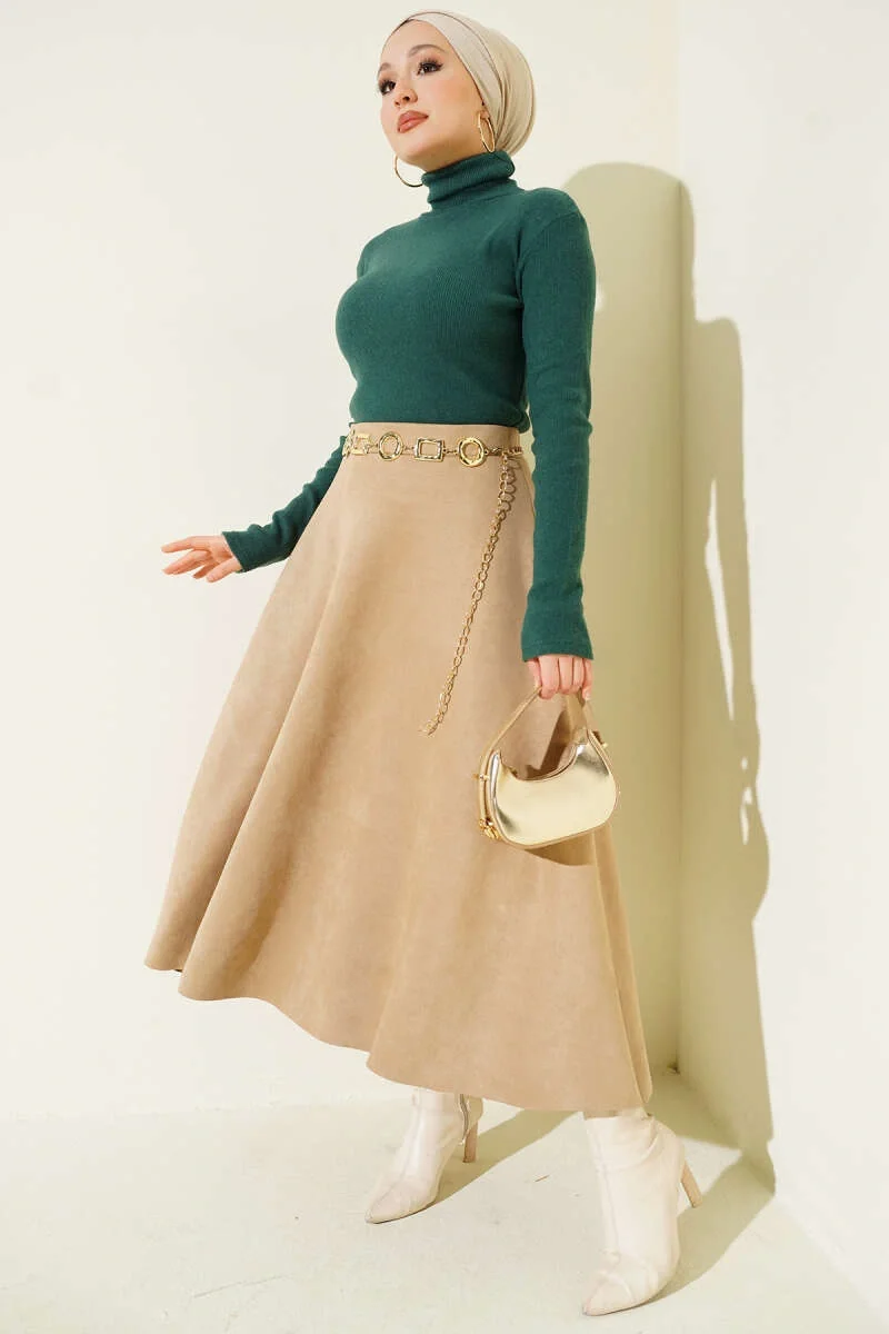 Sütlü Kahve Boğazlı Fitilli Triko Body