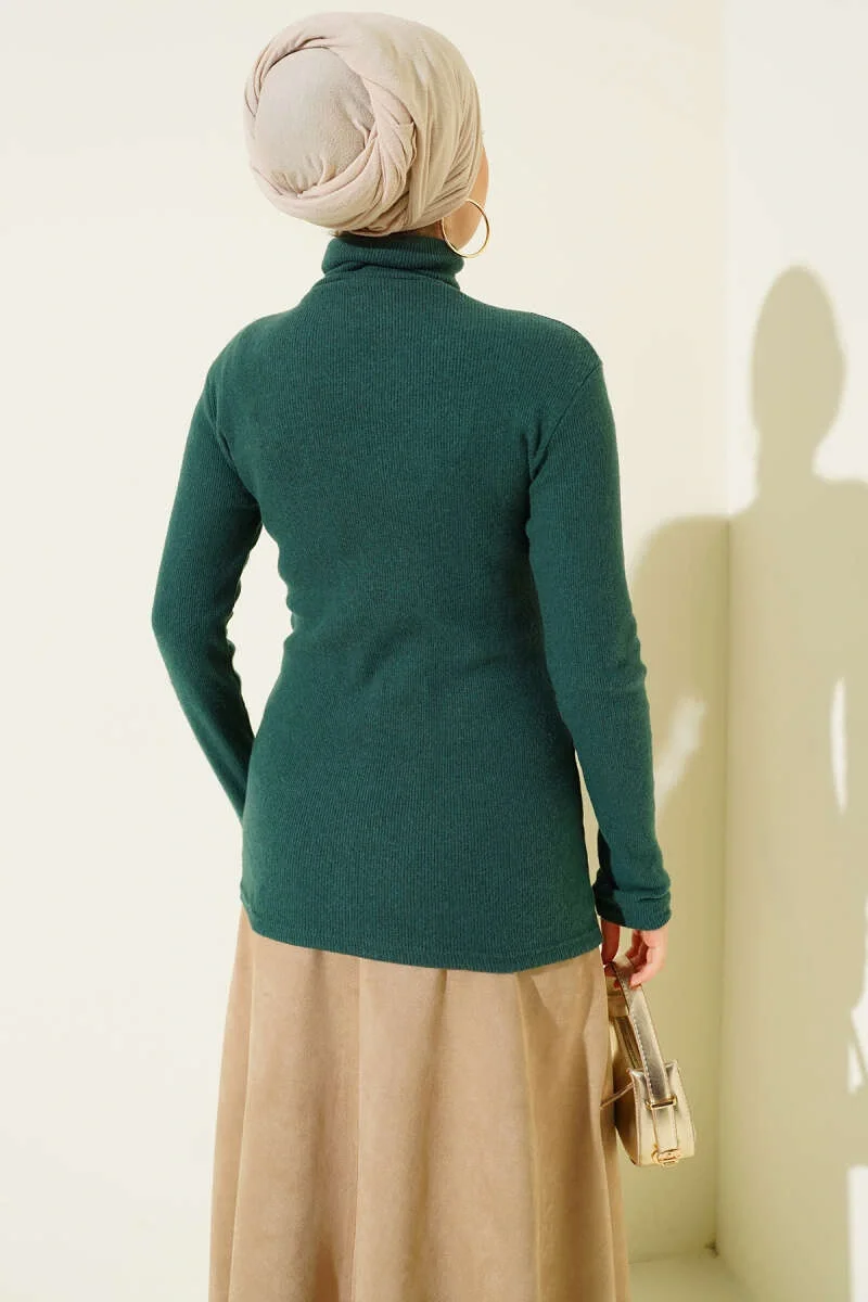 Zümrüt Boğazlı Fitilli Triko Body