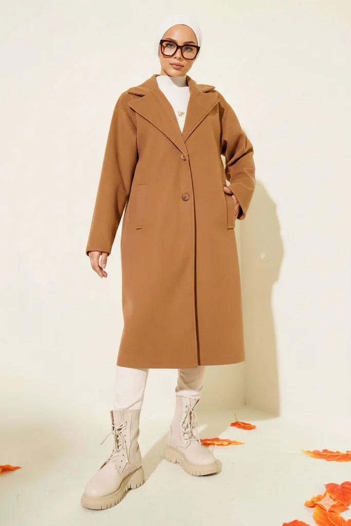 Taş Premium Kruvaze Yaka Oversize Uzun Kaşe Kaban