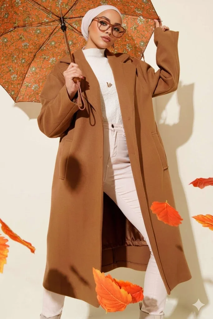 Kahve Premium Kruvaze Yaka Oversize Uzun Kaşe Kaban