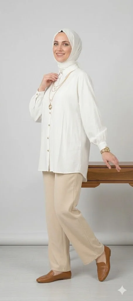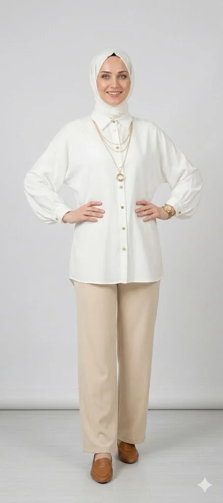 Gardırobunuzun en joker parçası olmaya aday bu beyaz gömlek, hem günlük kombinlerinizde hem de özel davetlerde size eşlik ediyor. Modern tesettür giyim anlayışıyla tasarlanan ürünümüz, kesimi ve kumaş kalitesiyle konforlu bir kullanım sunar.