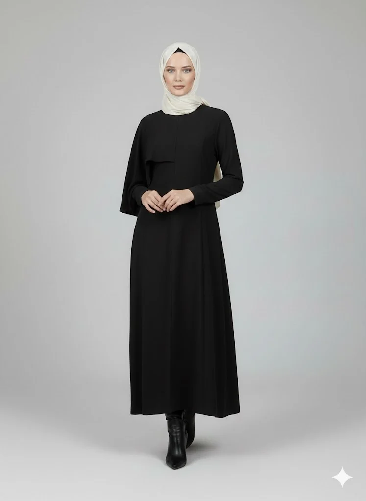 Kalıp ve Uyum: Tesettür giyim standartlarına uygun, vücut hatlarını belli etmeyen dökümlü kesime sahiptir.